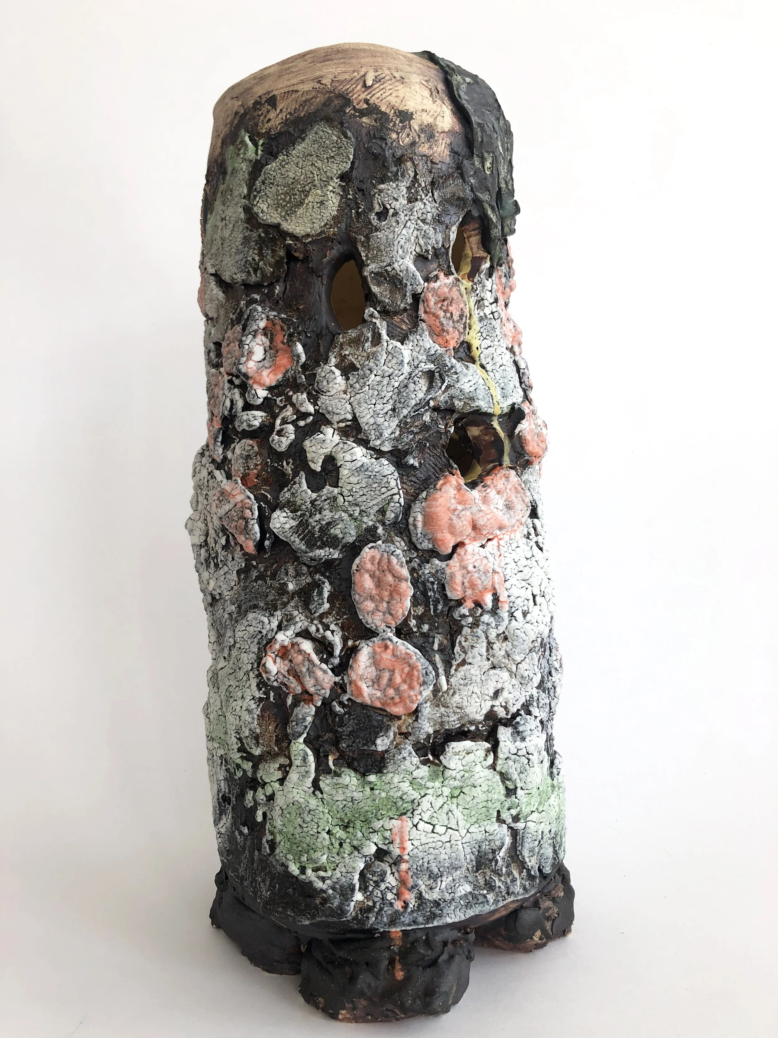 Lichen Stump, glazed stoneware, 16 x 6 x 6 in, 2023